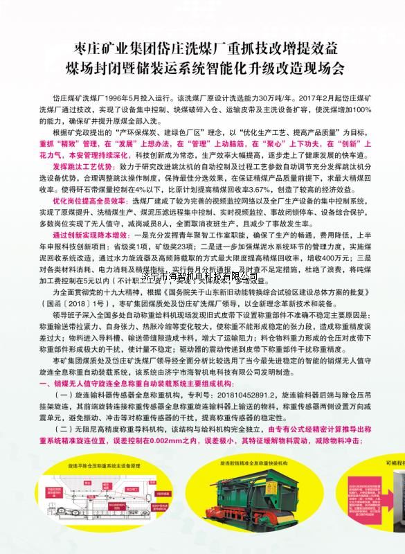 本產(chǎn)品一經(jīng)推出即獲得各大設(shè)計(jì)院及用戶的一致好評(píng),率先在棗礦集團(tuán)岱莊煤礦取得成功應(yīng)用,2018年9月受邀參加了《棗礦集團(tuán)煤場(chǎng)封閉暨儲(chǔ)裝運(yùn)系統(tǒng)智能化升級(jí)改造現(xiàn)場(chǎng)會(huì)》,智能裝車系統(tǒng)得到了充分肯定!我司憑借雄厚的加工制造實(shí)力及過硬的創(chuàng)新技術(shù)能力,勢(shì)必為運(yùn)輸稱重系統(tǒng)、快速計(jì)量裝車系統(tǒng)帶來又一次的技術(shù)創(chuàng)新變革。