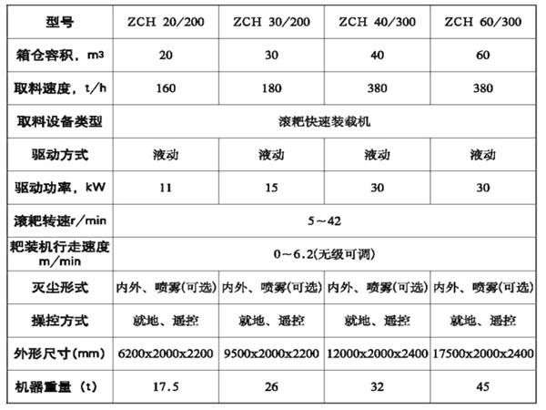 ZCH系列自動(dòng)儲(chǔ)料分裝分運(yùn)緩沖倉系統(tǒng)性能參數(shù):